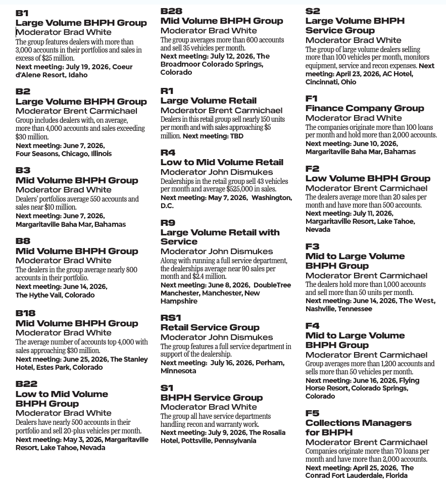 No matter the size or the makeup of your dealership, there’s a 20 Group of similar dealers from around the nation ready to meet with you and help your business succeed.